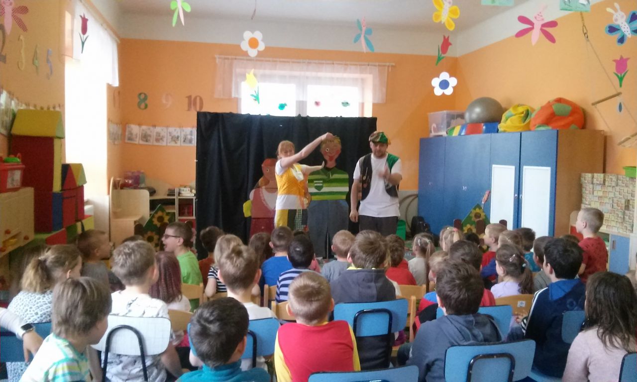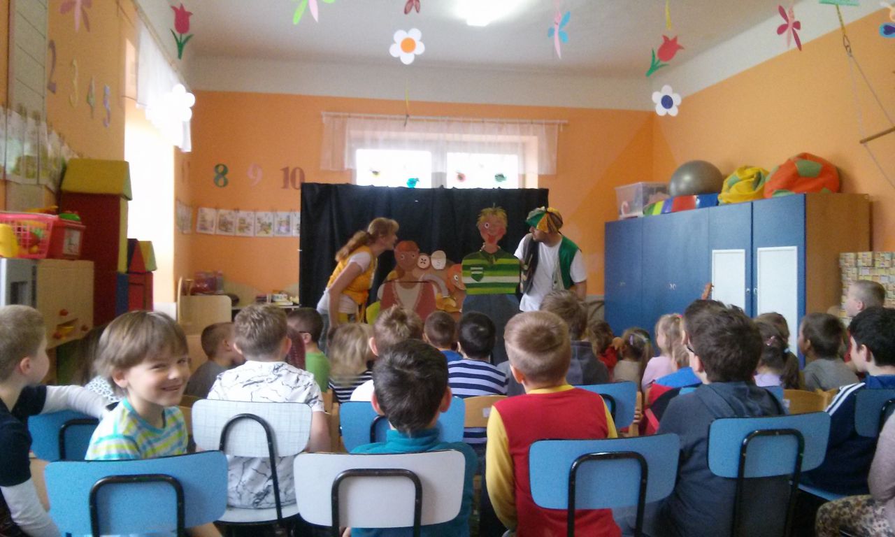 Dne 28. 4. 2017 nás navštívilo Divadélko Kůzle s pohádkou "S chutí do toho".