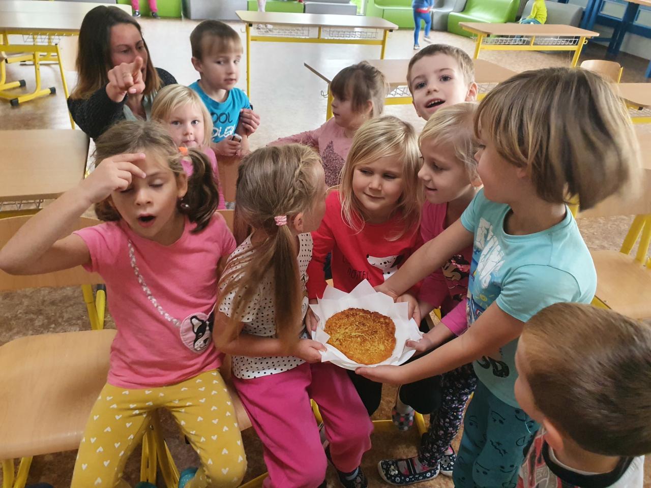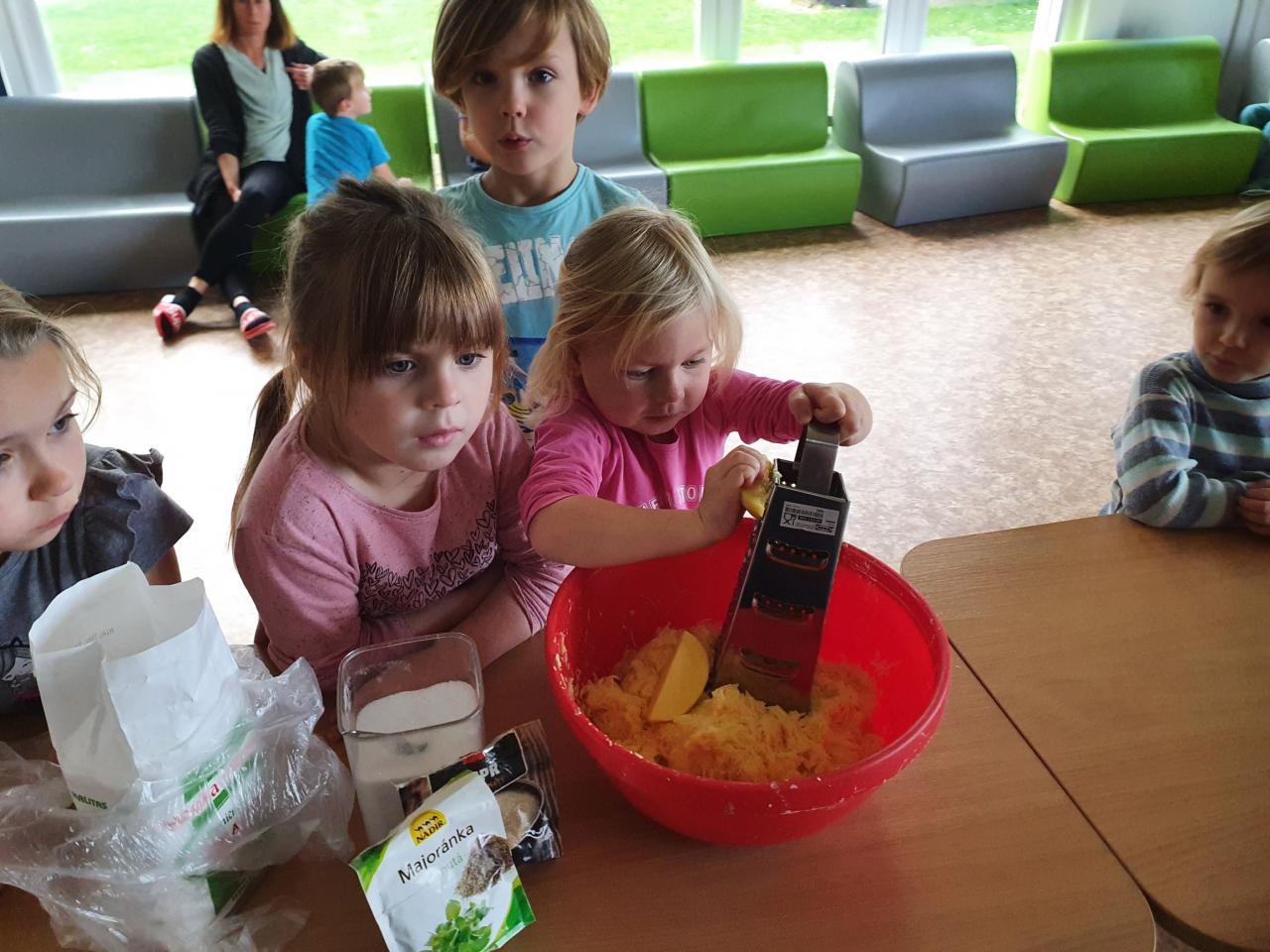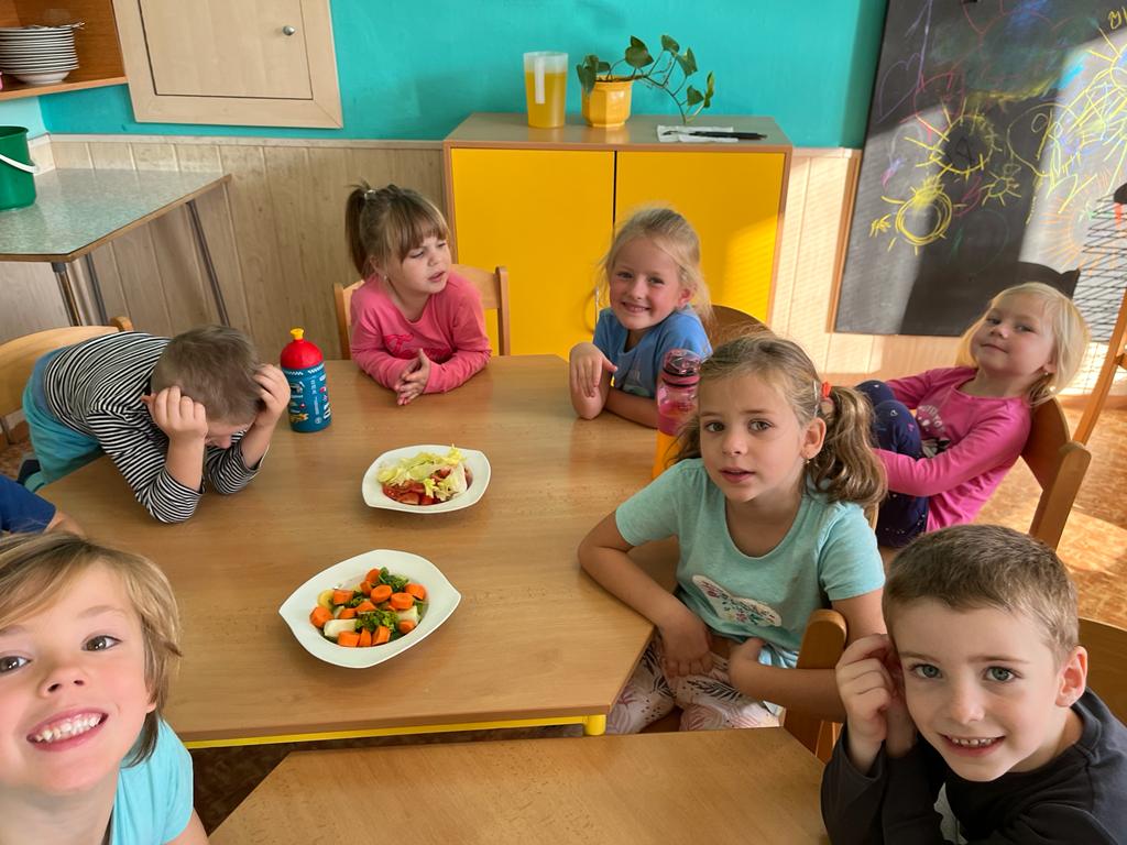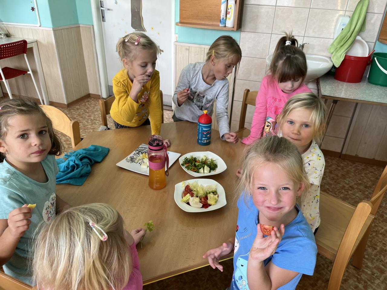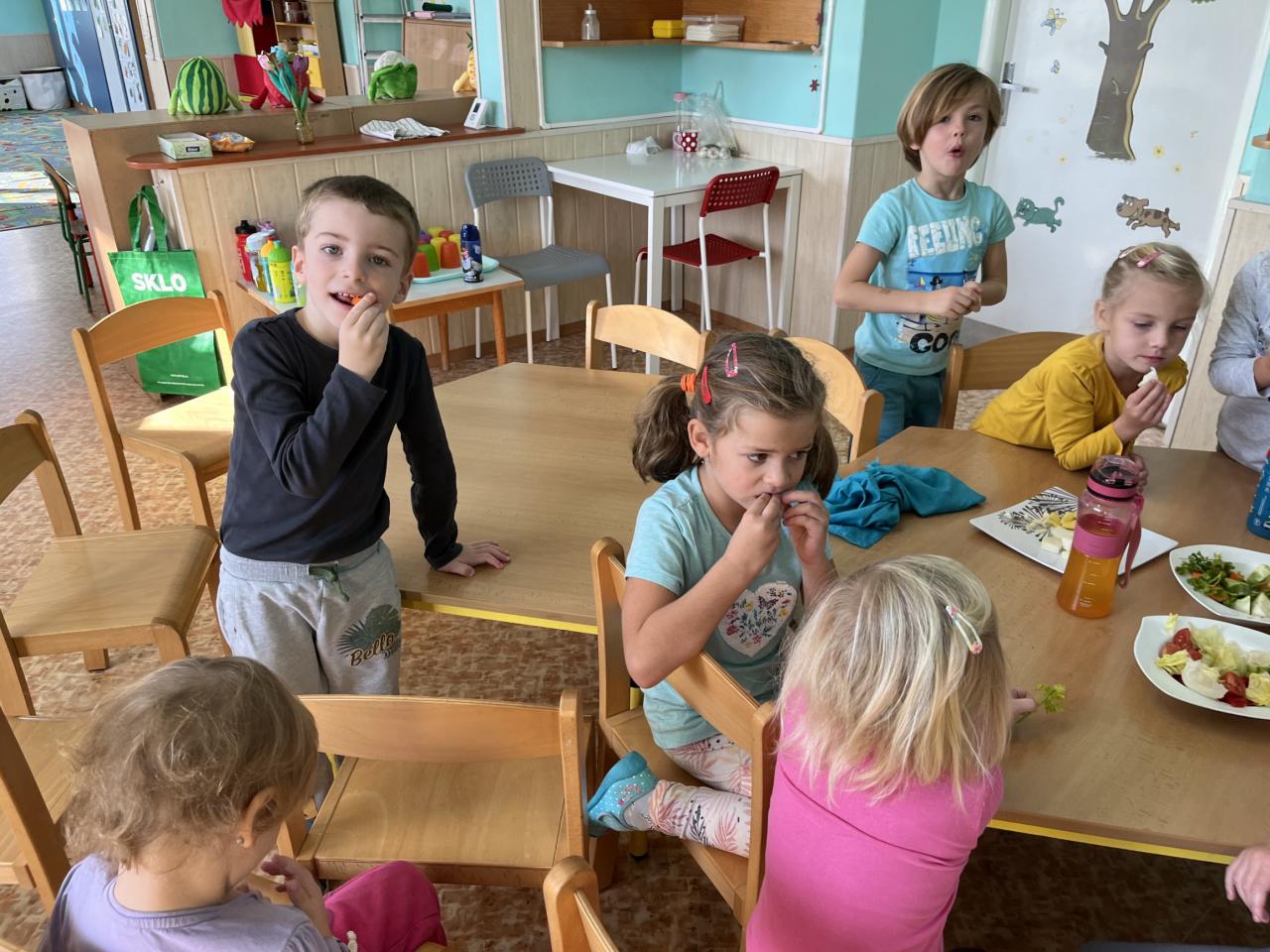 V tomto týdnu se děti dozvěděly, nebo si připoměly, které druhy zeleniny se pěstují v zahrádkách a které plodiny rostou na našich polích. Společně jsme si usmažili bramboráky. Zahráli jsme si pohádku O veliké řepě, ochutnávali a poznávali jsme zeleninu pomocí všech smyslů. Zpívali jsme a učili se básničky a děti vytvořily krásné papírové mrkvičky a brokolice.