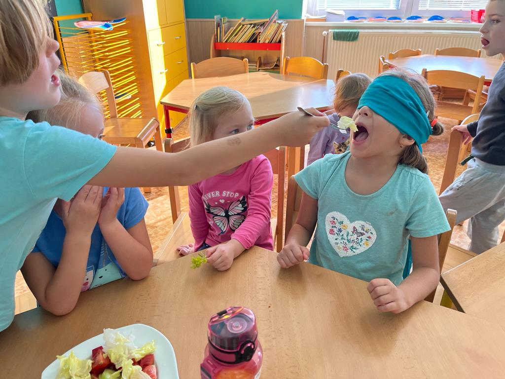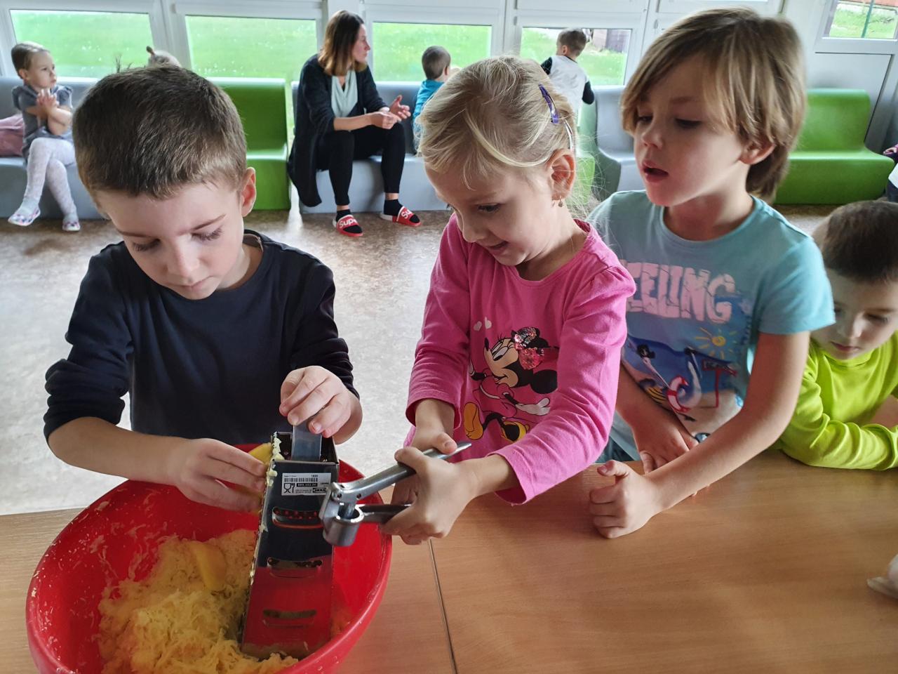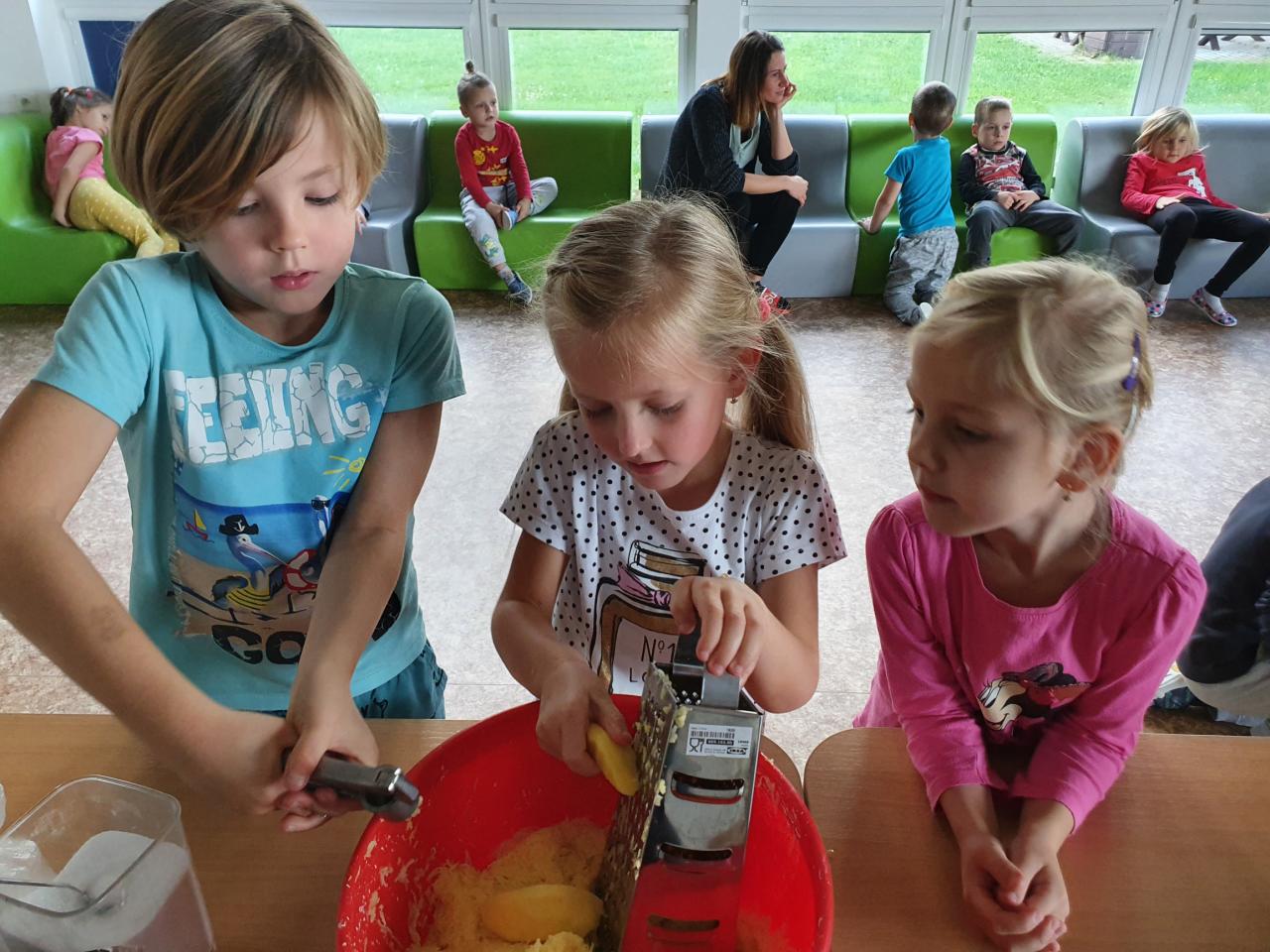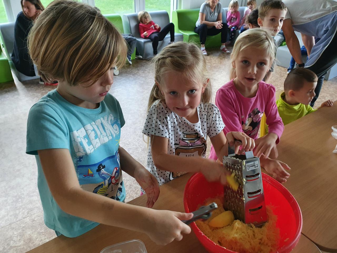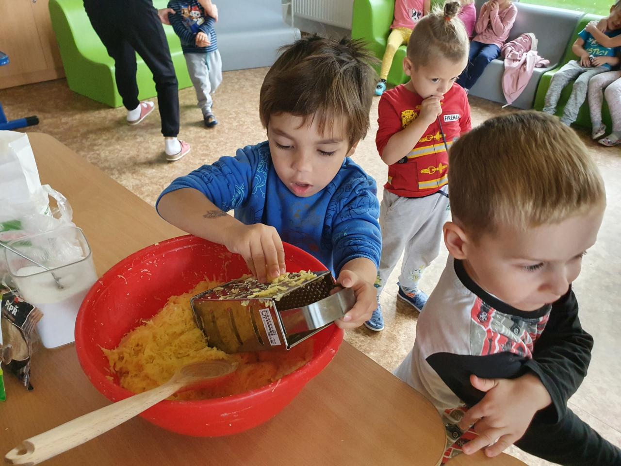 V tomto týdnu se děti dozvěděly, nebo si připoměly, které druhy zeleniny se pěstují v zahrádkách a které plodiny rostou na našich polích. Společně jsme si usmažili bramboráky. Zahráli jsme si pohádku O veliké řepě, ochutnávali a poznávali jsme zeleninu pomocí všech smyslů. Zpívali jsme a učili se básničky a děti vytvořily krásné papírové mrkvičky a brokolice.