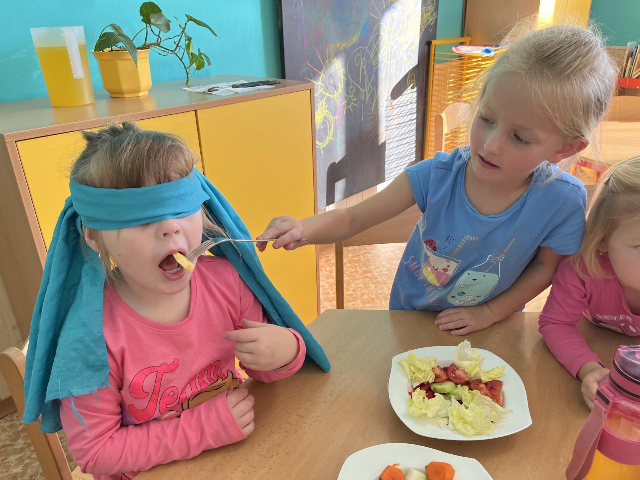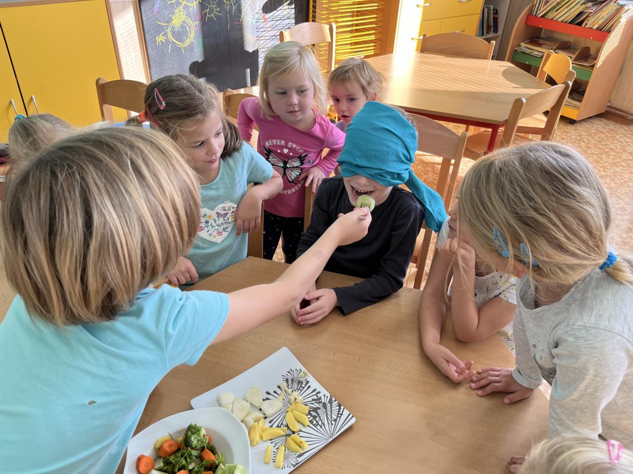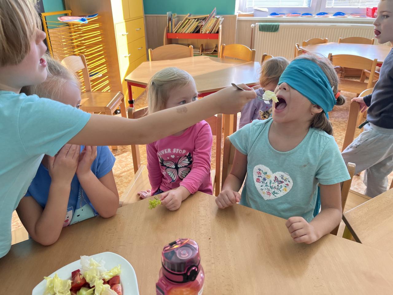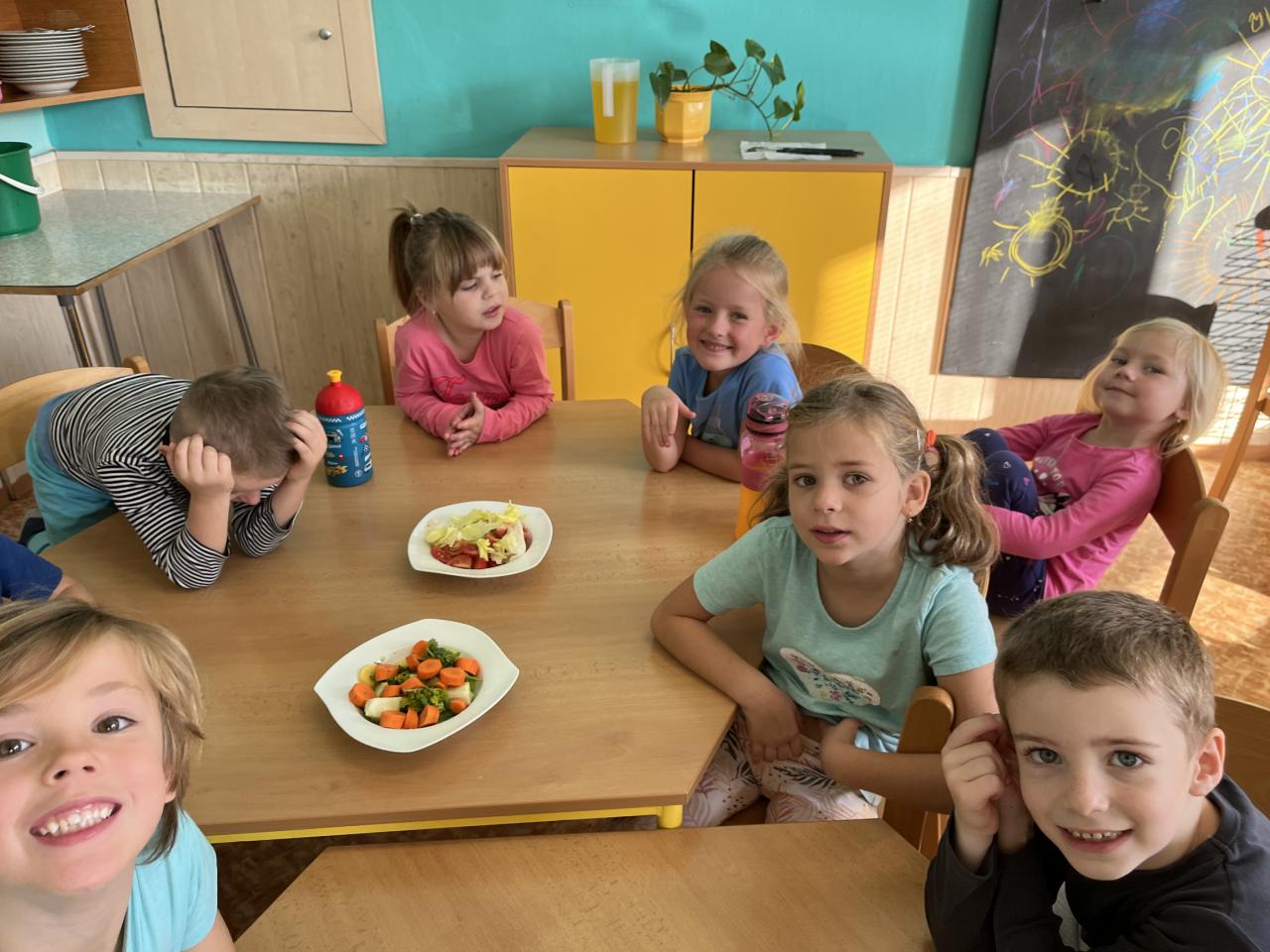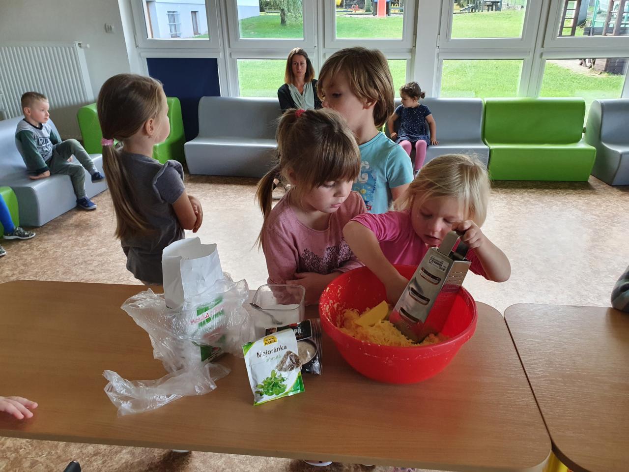 V tomto týdnu se děti dozvěděly, nebo si připoměly, které druhy zeleniny se pěstují v zahrádkách a které plodiny rostou na našich polích. Společně jsme si usmažili bramboráky. Zahráli jsme si pohádku O veliké řepě, ochutnávali a poznávali jsme zeleninu pomocí všech smyslů. Zpívali jsme a učili se básničky a děti vytvořily krásné papírové mrkvičky a brokolice.